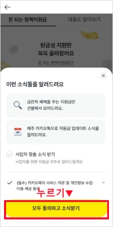 - 카카오페이에서 돈되는 정책지원금 알림신청 방법