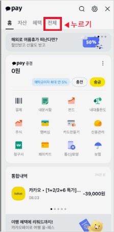 3. 카카오페이 화면에서 전체를 클릭한다.